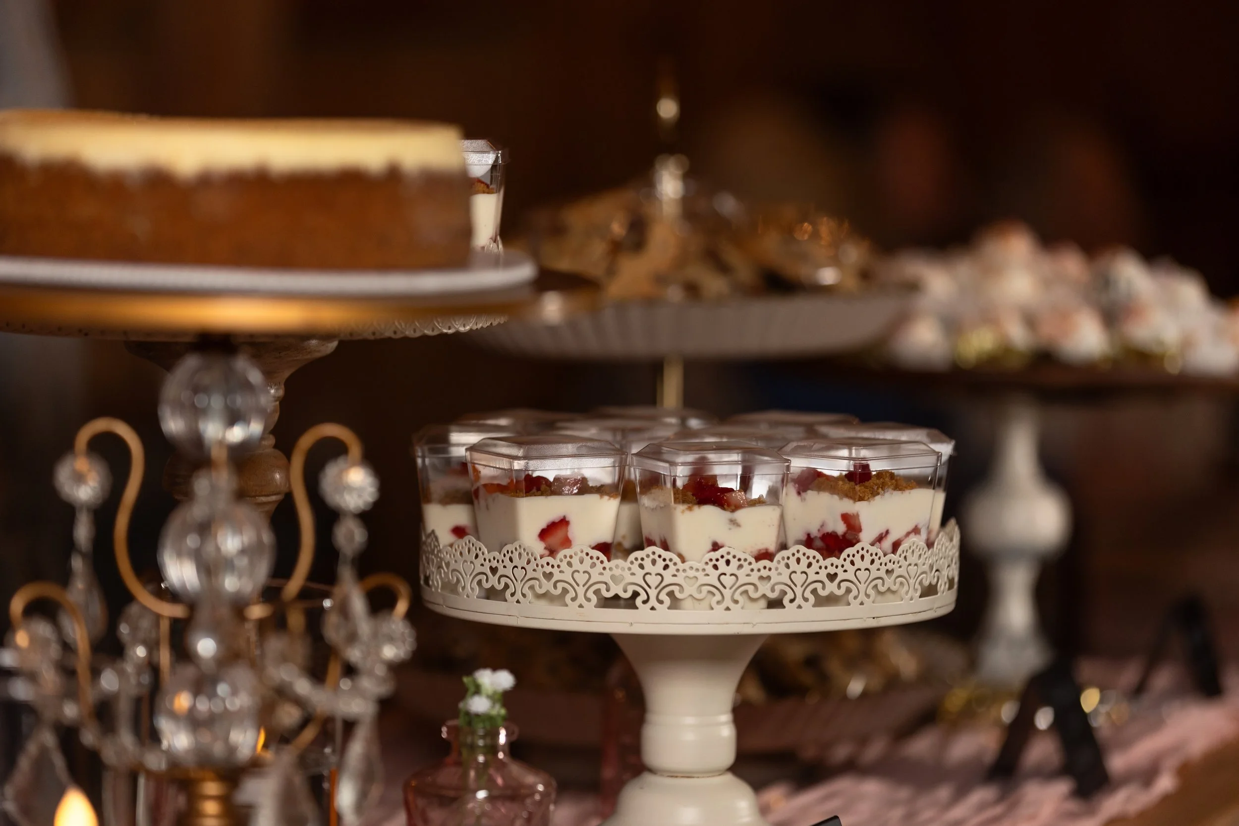 We will work with you to develop the perfect dessert table for your wedding or engagement. Our selections include but are not limited to custom cakes, assorted desserts, pastries, and gluten- free and vegan desserts (available upon request to accommodate dietary restrictions). Decor, cake stands, platters and floral designs can be incorporated to elevate your design. We provide the delivery, set-up and breakdown for a full-service experience.